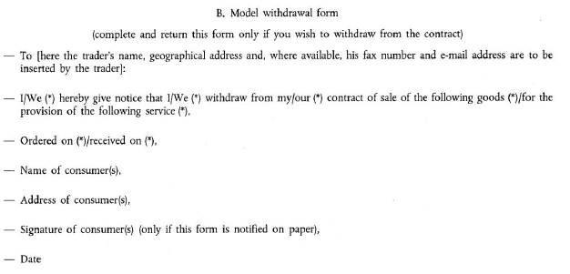 Distance selling – right of retraction/cancellation